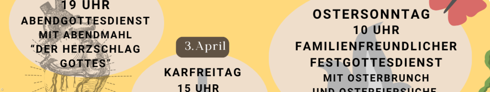 Gründonnerstag, 2. April, 19 Uhr: Abendgottesdienst mit Abendmahl, zum Thema: "Der Herzschlag Gottes", Ev. Gemeindezentrum